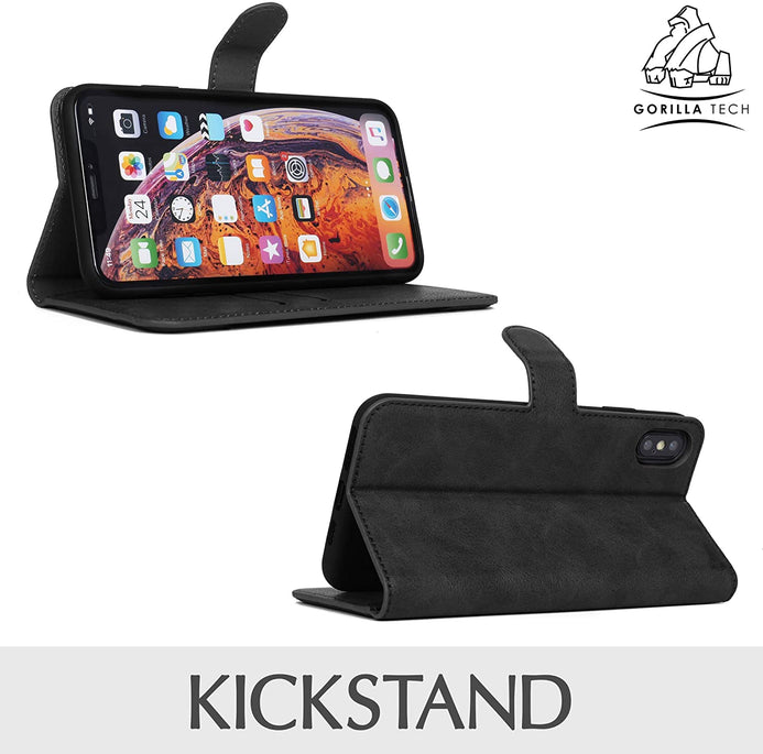 Gorilla Tech iPhone 11 Pro Max Leather Case and Screen Protector, Premium Quality, Stand Wallet Cover Magnet Flip Case [Black Leather] 6.5 inch iPhone Multiple Card Slots, Folio Book Case