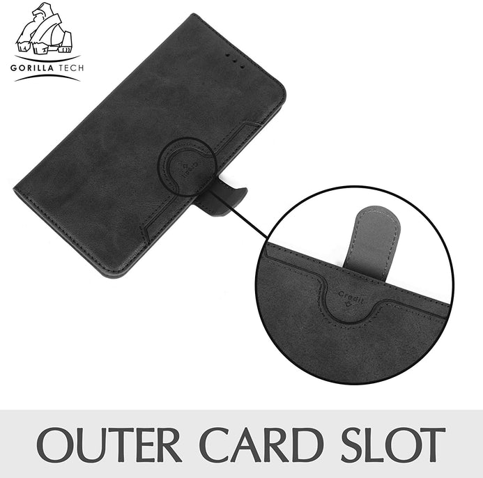 Gorilla Tech iPhone X/XS Leather Case and Screen Protector, Premium Quality, Stand Wallet Cover Magnet Flip Case [Black Leather] 5.8 inch iPhone Multiple Card Slots, Folio Book Case