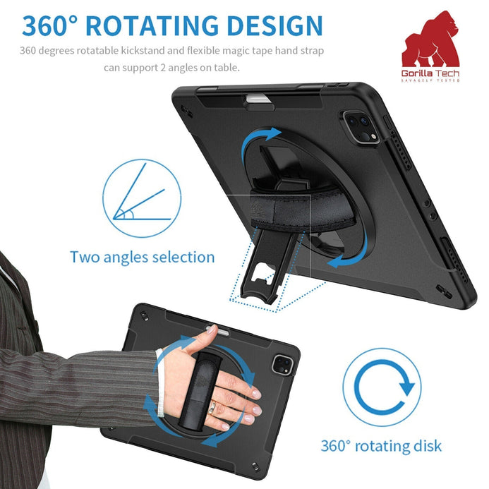 iPad Pro 11 (2022) 4th Gen Gorilla Tech Survivor Builder Protective Stand 360 Rotating Case Black