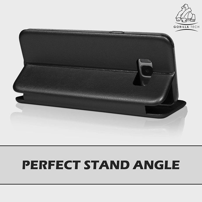 A case with curved edges , a new addition to Protection with Style from Gorilla Tech . The unique design gives this case a stylish and delicate look and feel. Gorilla Tech products are designed to reflect a wide range of styles and preferences. Like the name, our products are designed to protect , using the latest technology, ingenious design and unbeatable user-friendliness to make this possible. Manufactured from high-quality material , this case is durable and hard-wearing , easily reducing or mitigating scratches, chips and bumps and allowing the Phone to look newer for longer. The curved edges add extra protection of the phone while gives the case a stylish and delicate look. This Case has a Secure and tight closure system to hold the Phone without compromise. Magnetic snap closure ensures complete protection. As well as the flip sticks to the back of the case while in use. Ultra Slim & Lightweight - Keeps your phone looking sleek and stylish. Made with precision and care from High Quality Material. Smart and Ultra Slim design with complete unrestricted viewable screen. Made with precision and care from High Quality Synthetic leather. Smart and slim design with complete unrestricted viewable screen. Precision cuts make accessing all of your Smartphone's ports and functions easy whilst keeping them protected, comfortable and precise access to all ports and function buttons. These cases are multifunctional and offer additional storage space, Fits any major card perfectly such as driving license, Bank/ID Cards Oyster card etc that you might need to carry. This case can easily be transformed into stand at the perfect angle for watching Videos, Facetime etc. to watch your favorite movies / TV shows without holding you phone.