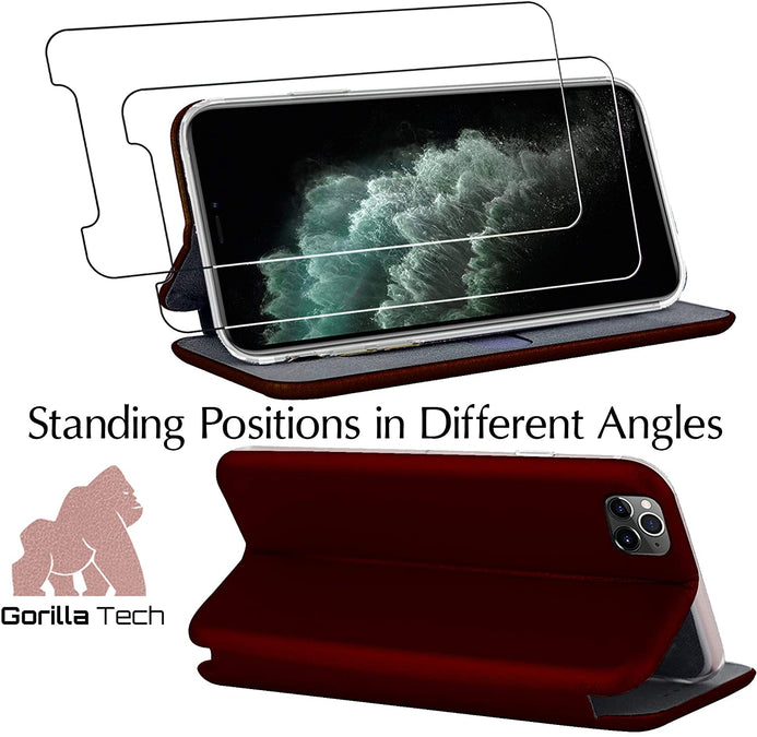 Gorilla Tech iPhone 11 Pro Flip Case and 2 Screen Protector Tempered Glass 3D Curve Premium Designer Slim [RFID Blocking Card Slot] Magnetic Closer Wallet Stand Cover 3-Pack, Black 5.8"