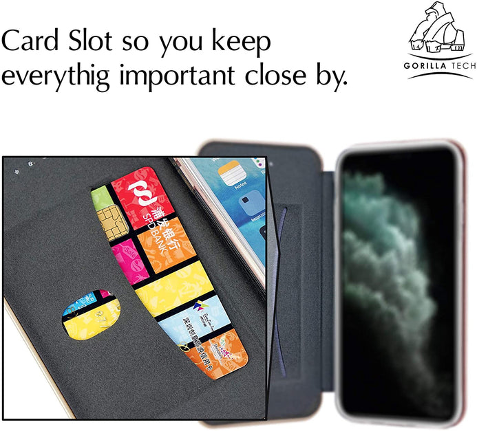 A case with curved edges, a new addition to Protection with Style from Gorilla Tech. The unique design gives this case a stylish and delicate look and feel. Gorilla Tech products are designed to reflect a wide range of styles and preferences. Like the name, our products are designed to protect, using the latest technology, ingenious design and unbeatable user-friendliness to make this possible. Manufactured from high-quality material, this case is durable and hard-wearing, easily reducing or mitigating scratches, chips and bumps and allowing the Phone to look newer for longer. The curved edges add extra protection of the phone while gives the case a stylish and delicate look. This Case has a Secure and tight closure system to hold the Phone without compromise. Magnetic snap closure ensures complete protection. As well as the flip sticks to the back of the case while in use. Ultra Slim & Lightweight - Keeps your phone looking sleek and stylish. Smart and Ultra Slim design with complete unrestricted viewable screen, made with precision and care from High Quality Synthetic leather. Precision cuts make accessing all of your Smartphone's ports and functions easy whilst keeping them protected. These cases are multifunctional and offer additional storage space, Fits any major card perfectly such as driving license, Bank/ID Cards Oyster card etc that you might need to carry. This case can easily be transformed into stand at the perfect angle for watching Videos, Facetime etc. to watch your favorite movies/ TV shows without holding you phone.