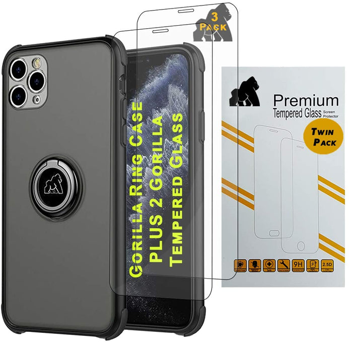 Gorilla Tech Defender iPhone 8/7 Plus Case and Screen Protector With Ring Stand 2 Tempered Glass Silicone Rubber Ultra Slim Anti Scratch Rugged Full Edge Cover 3-Pack