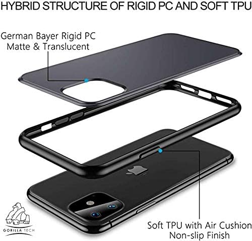 Gorilla Tech Case for iPhone 11 Pro Case With Tempared Glass Translucent Matte Back Screen Protector, Flexible Soft Edges Case, Shock Absorption Cover -Black