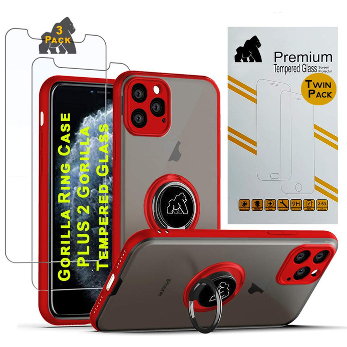 iPhone 13 Pro Max Gorilla Tech Ring Shadow Case With 2 X Gorilla Glass Screen Protector, Ring Stand Silicone Rubber Ultra Slim Anti Scratch Rugged Full Edge Cover
