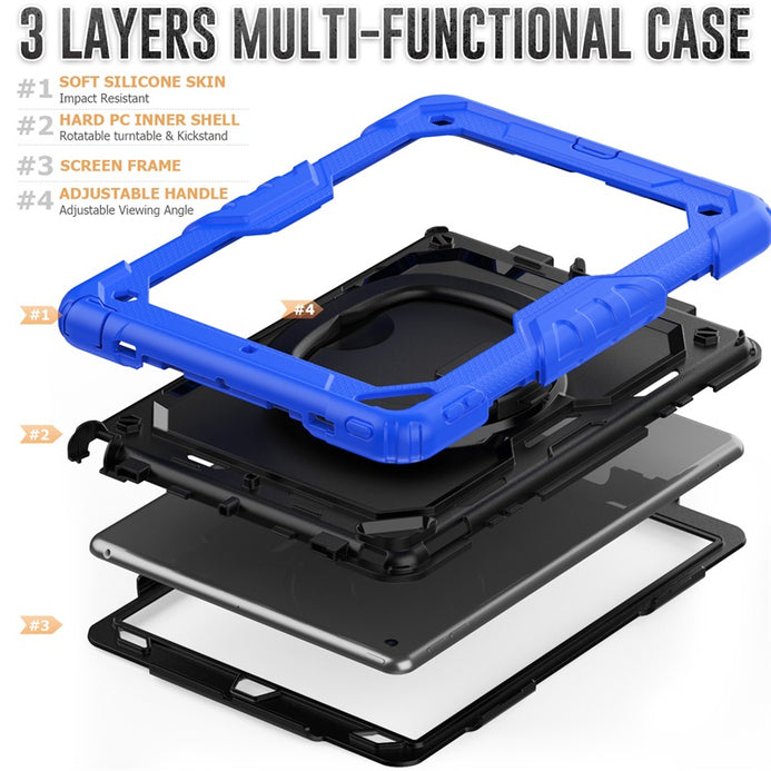 iPad 10.2 (2020) 8th Gen Gorilla Tech Armour Builder Survivor Protective Stand Case Blue