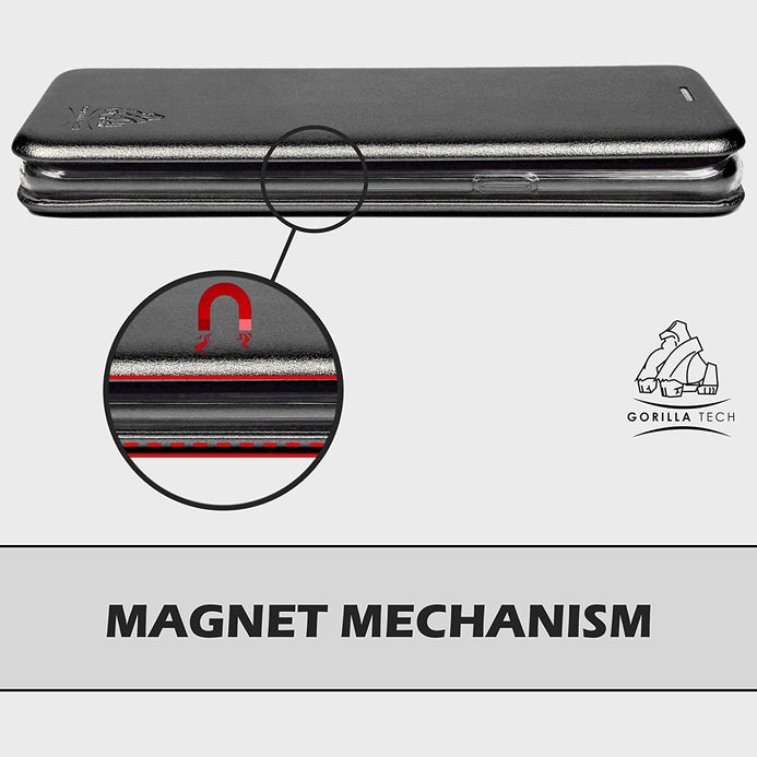 A case with curved edges , a new addition to Protection with Style from Gorilla Tech . The unique design gives this case a stylish and delicate look and feel. Gorilla Tech products are designed to reflect a wide range of styles and preferences. Like the name, our products are designed to protect , using the latest technology, ingenious design and unbeatable user-friendliness to make this possible. Manufactured from high-quality material , this case is durable and hard-wearing , easily reducing or mitigating scratches, chips and bumps and allowing the Phone to look newer for longer. The curved edges add extra protection of the phone while gives the case a stylish and delicate look. This Case has a Secure and tight closure system to hold the Phone without compromise. Magnetic snap closure ensures complete protection. As well as the flip sticks to the back of the case while in use. Ultra Slim & Lightweight - Keeps your phone looking sleek and stylish. Made with precision and care from High Quality Material. Smart and Ultra Slim design with complete unrestricted viewable screen. Made with precision and care from High Quality Synthetic leather. Smart and slim design with complete unrestricted viewable screen. Precision cuts make accessing all of your Smartphone's ports and functions easy whilst keeping them protected, comfortable and precise access to all ports and function buttons. These cases are multifunctional and offer additional storage space, Fits any major card perfectly such as driving license, Bank/ID Cards Oyster card etc that you might need to carry. This case can easily be transformed into stand at the perfect angle for watching Videos, Facetime etc. to watch your favorite movies / TV shows without holding you phone.