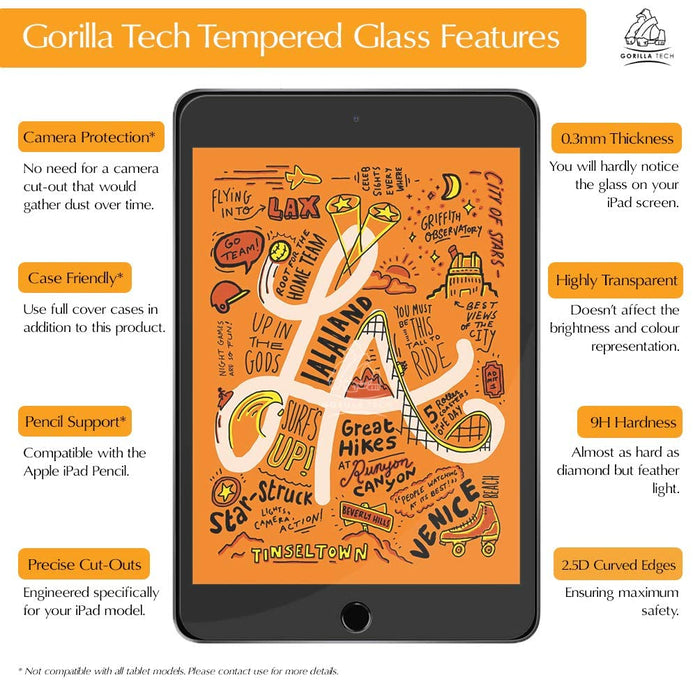 • These Quality Gorilla Tech PREMIUM TEMPERED GLASS screen protectors are super tough, ultra clear and maintain your screen's original touchscreen sensitivity without compromising the high-definition viewing experience.
